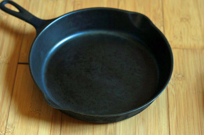 Step 2: Using a paper towel, rub coconut oil into every nook and cranny of your pan - top, bottom, sides, inside walls, handle…everywhere. Rub it it really well. Get yourself a clean paper towel, and now wipe the entire pan so that it looks dry. Yes, it will look as though you have wiped all of the oil off, but you haven’t…the thin layer of oil that is left is what you are aiming for.